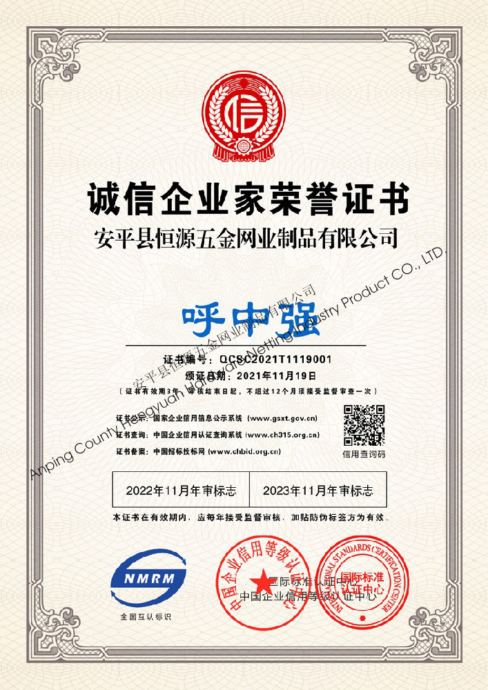 多年來,安平縣恒源五金網(wǎng)業(yè)制品有限公司堅(jiān)持“科技興企、質(zhì)量立業(yè)”的經(jīng)營理念和“誠心為本、客戶至上”的合作宗旨,優(yōu)化生產(chǎn)工藝,打造優(yōu)質(zhì)產(chǎn)品,提供完善的服務(wù),受到國內(nèi)外客戶的一致好評,產(chǎn)品行銷全國各地,并出口美國、德國、韓國、日本、臺灣等國家和地區(qū)。